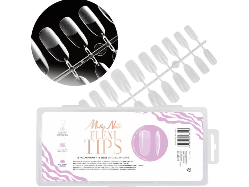 Flexi Tips Molly Nails oválné tipy na rychlé prodloužení nehtů 240 ks