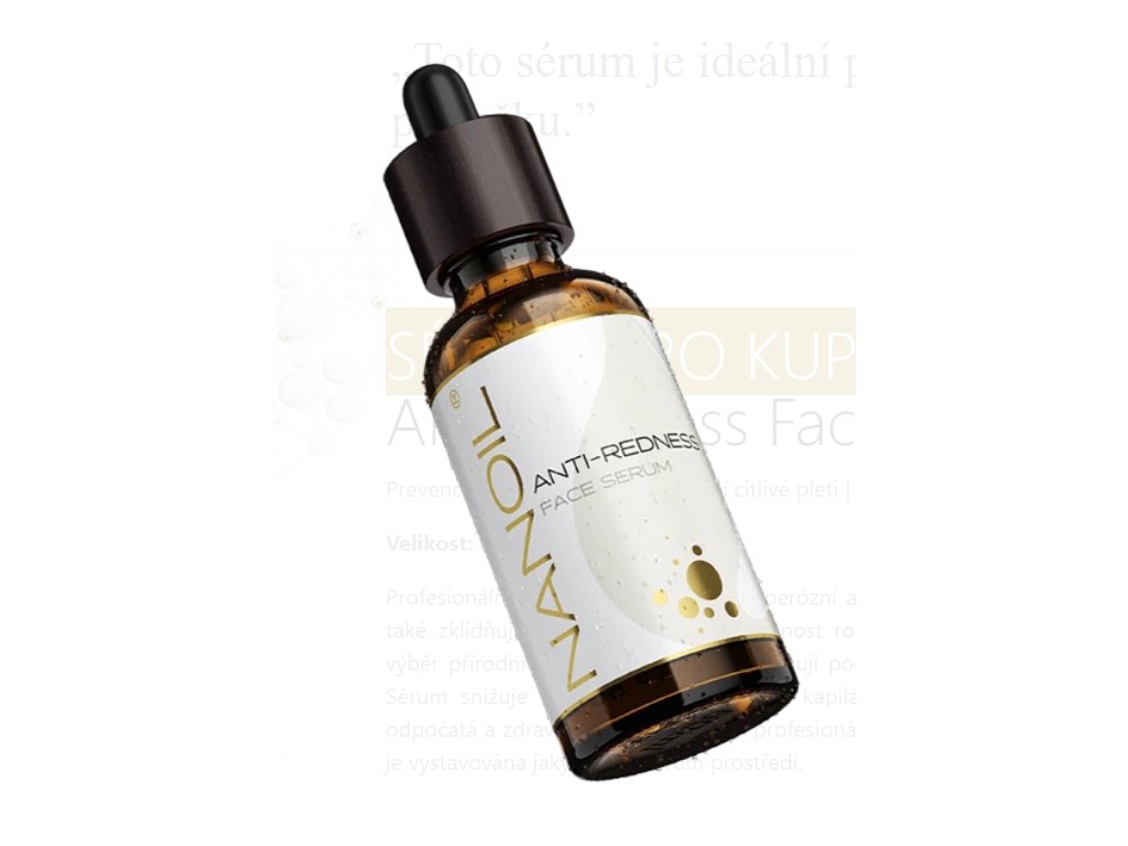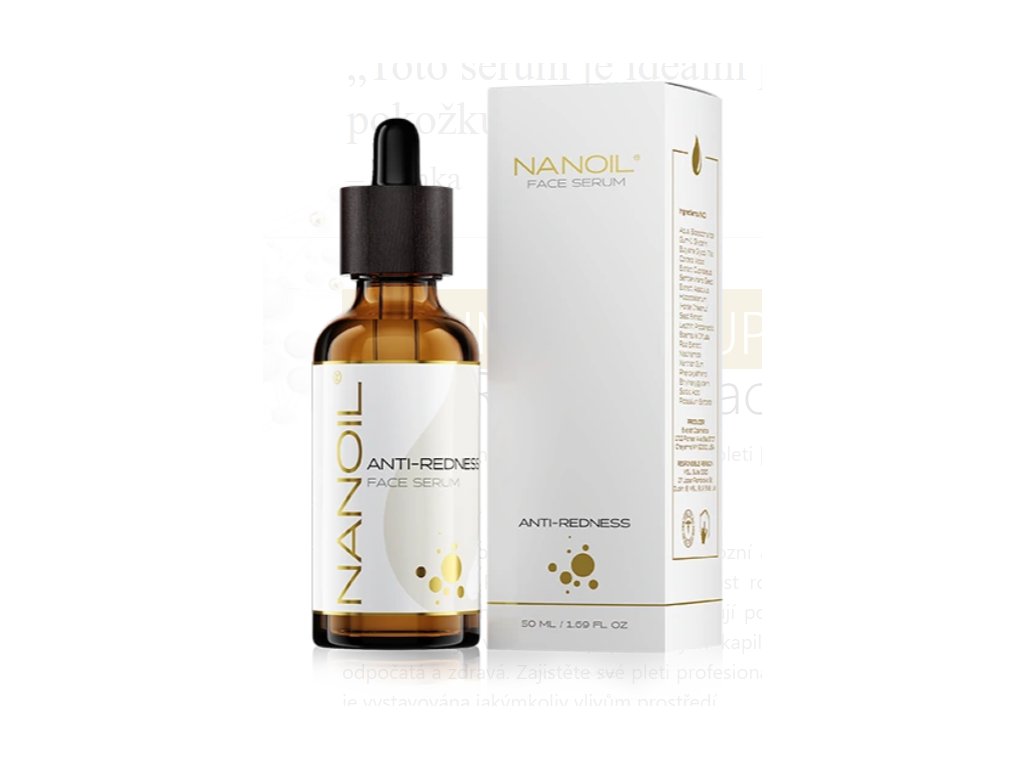 Nanoil Anti-Redness Face Serum je produkt vyvinutý pro péči o citlivou pokožku s rozšířenými kapilárami a je určen pro okamžité zvládnutí všech problémů, které ji trápí. Perfektně vyrovnává tón pleti, snižuje viditelnost rozšířených a metličkových žil, eliminuje zarudnutí a také pleť efektivně posiluje.