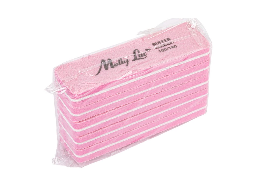 Oboustranná leštička Buffer mini široká Soft 100/180 růžová MollyLac 5 ks